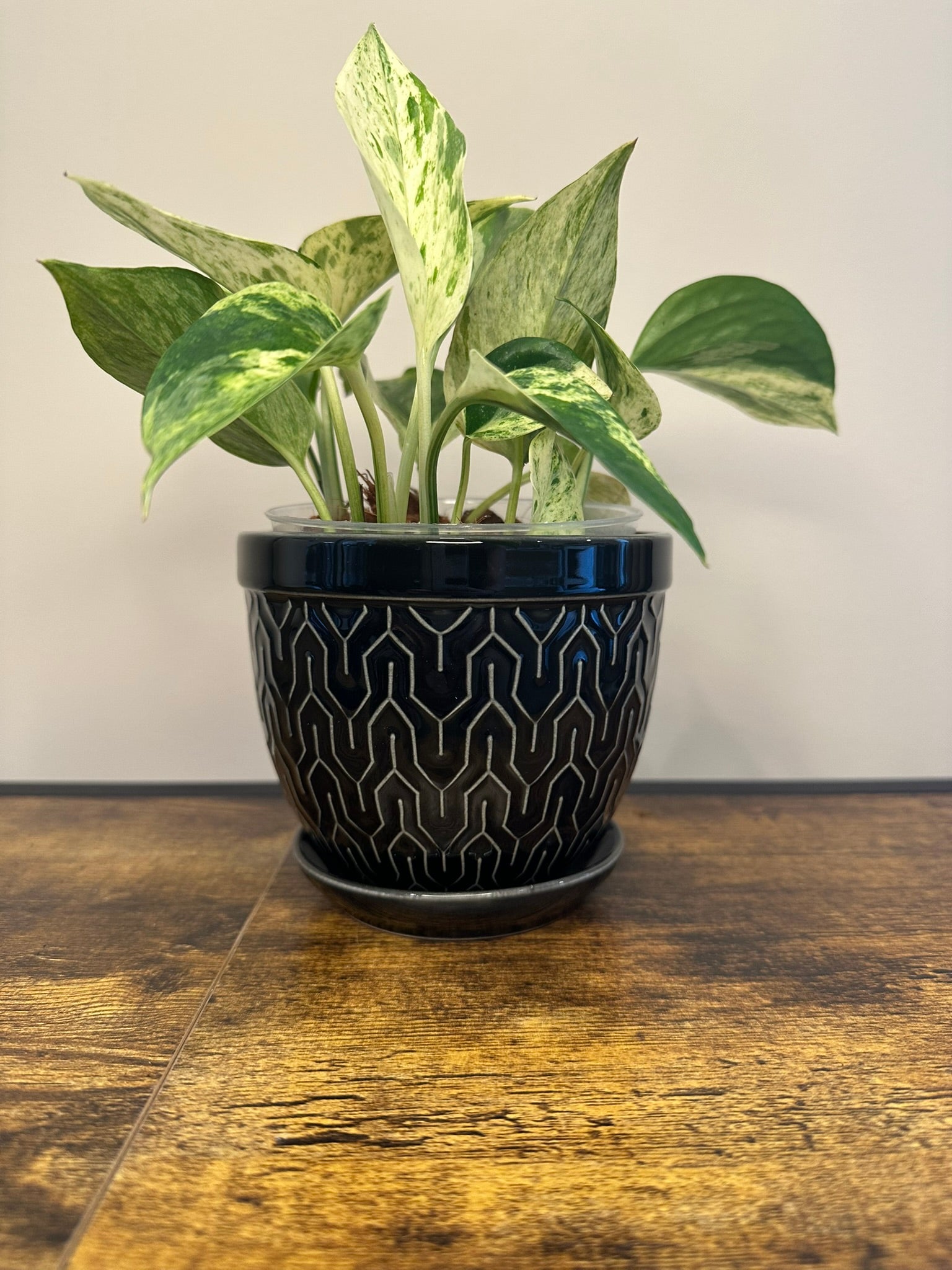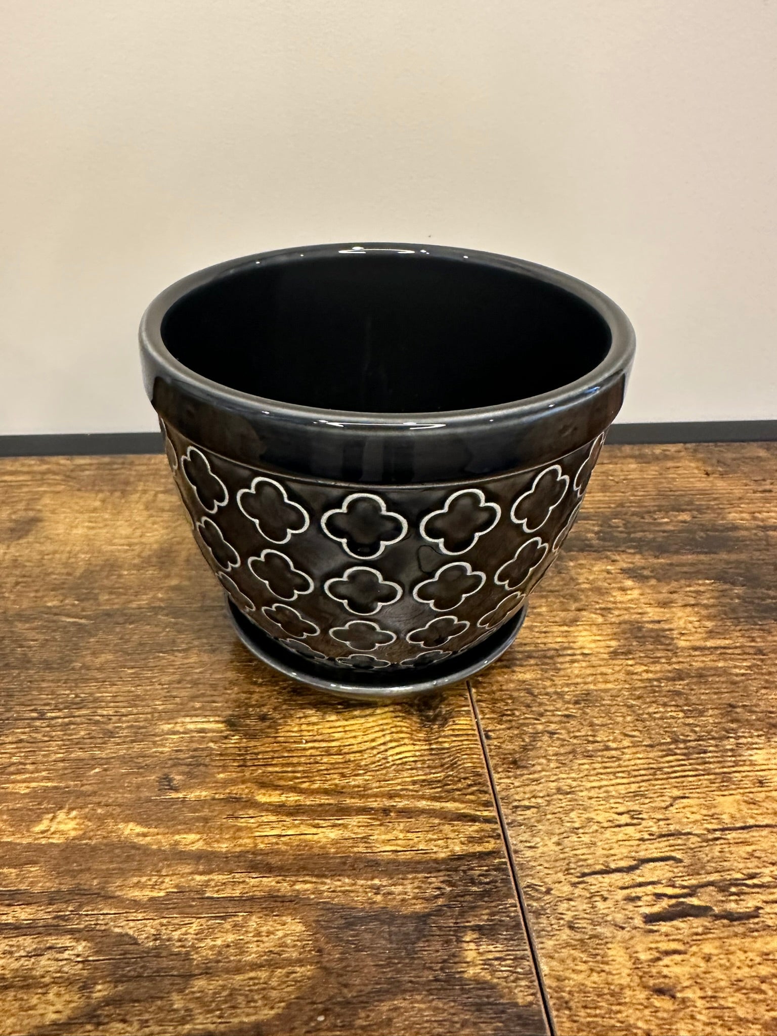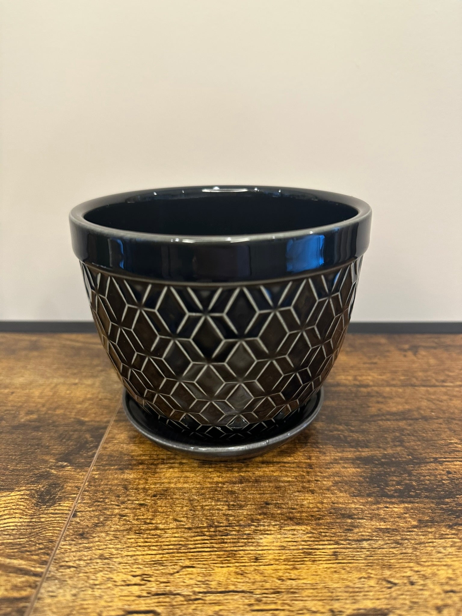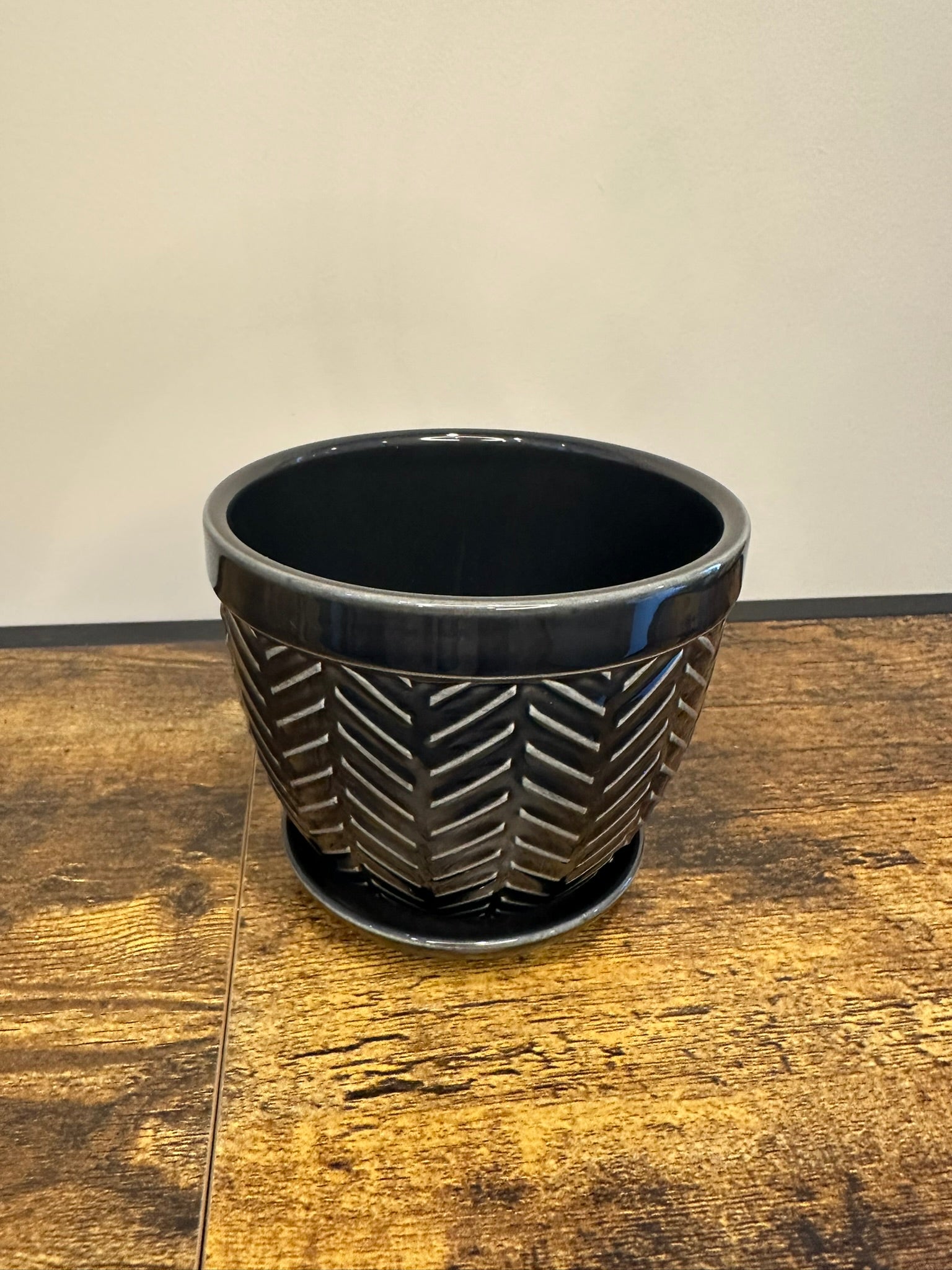 Level up your plant game with this trendy black ceramic pot. The unique subtle patterns not only elevate your decor but also offer versatile options for displaying your plants. No need to worry about messy soil spills - each pot comes with a convenient drip tray and screen. A must-have for any plant parent!