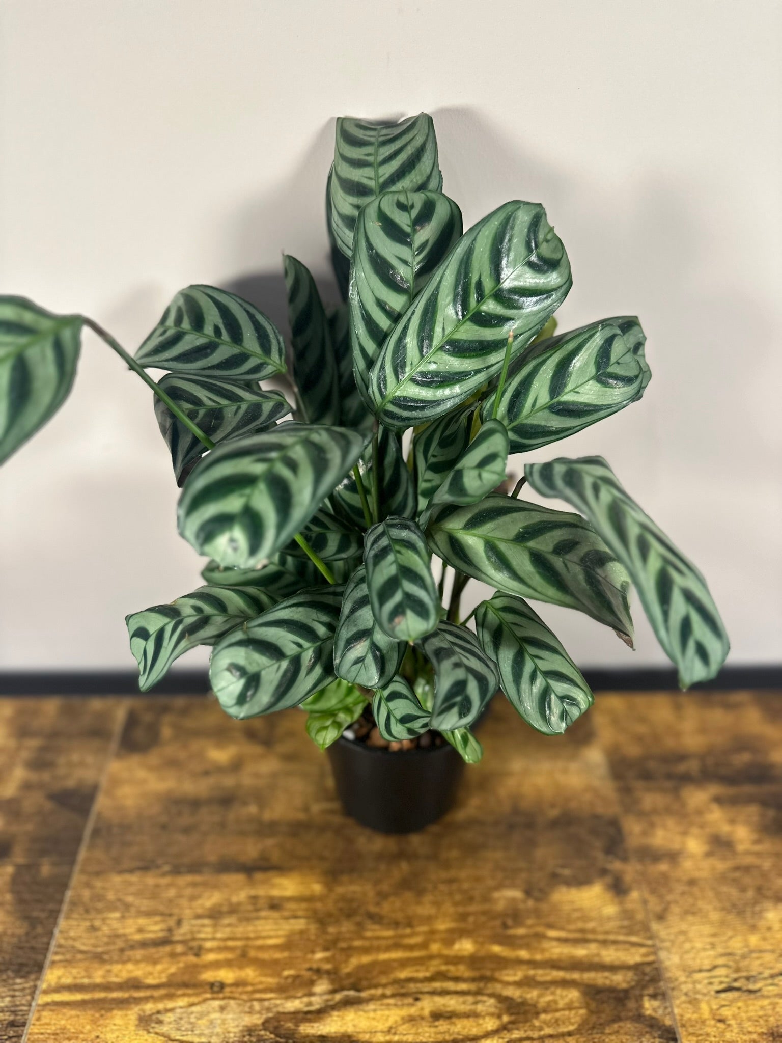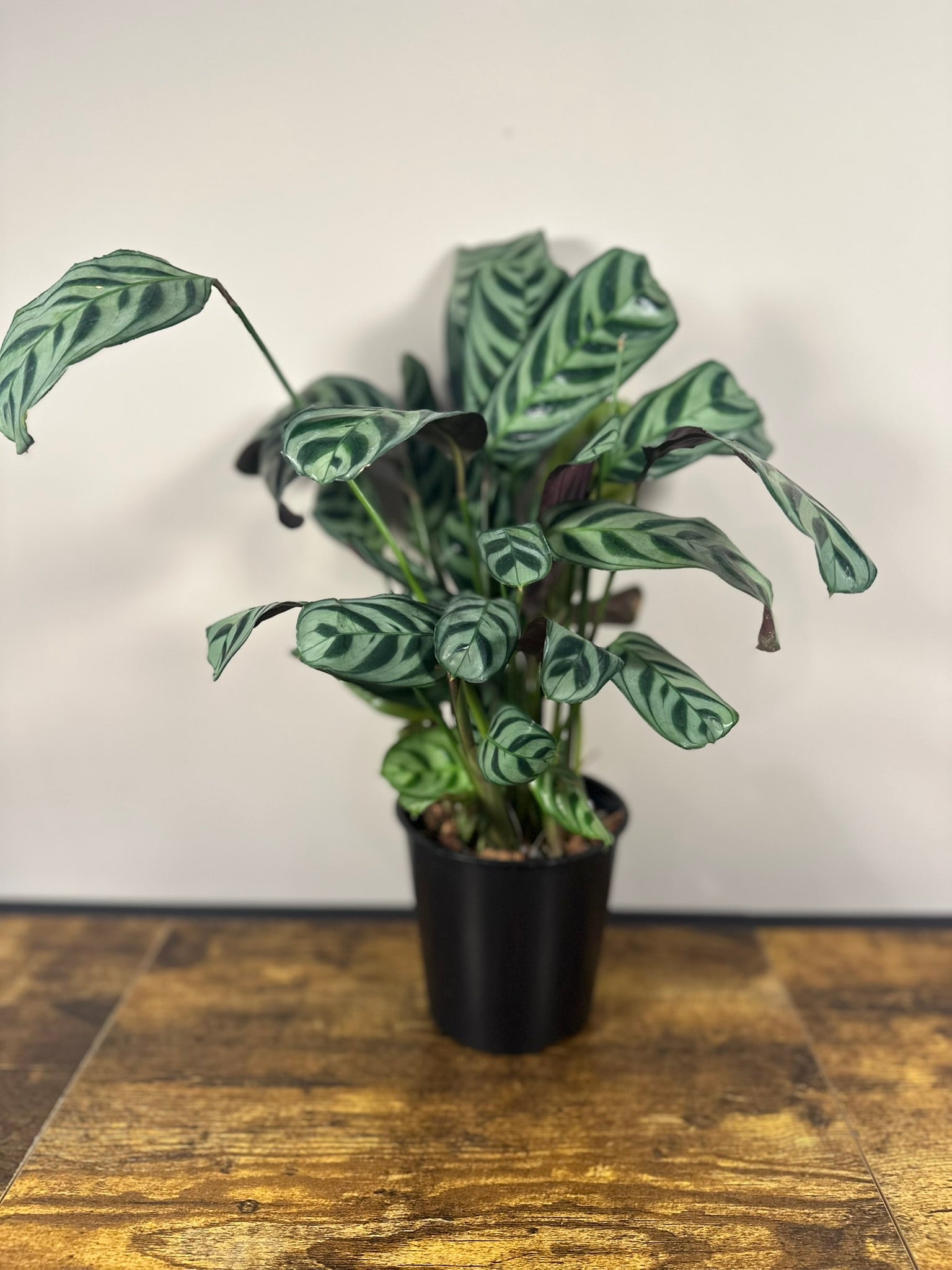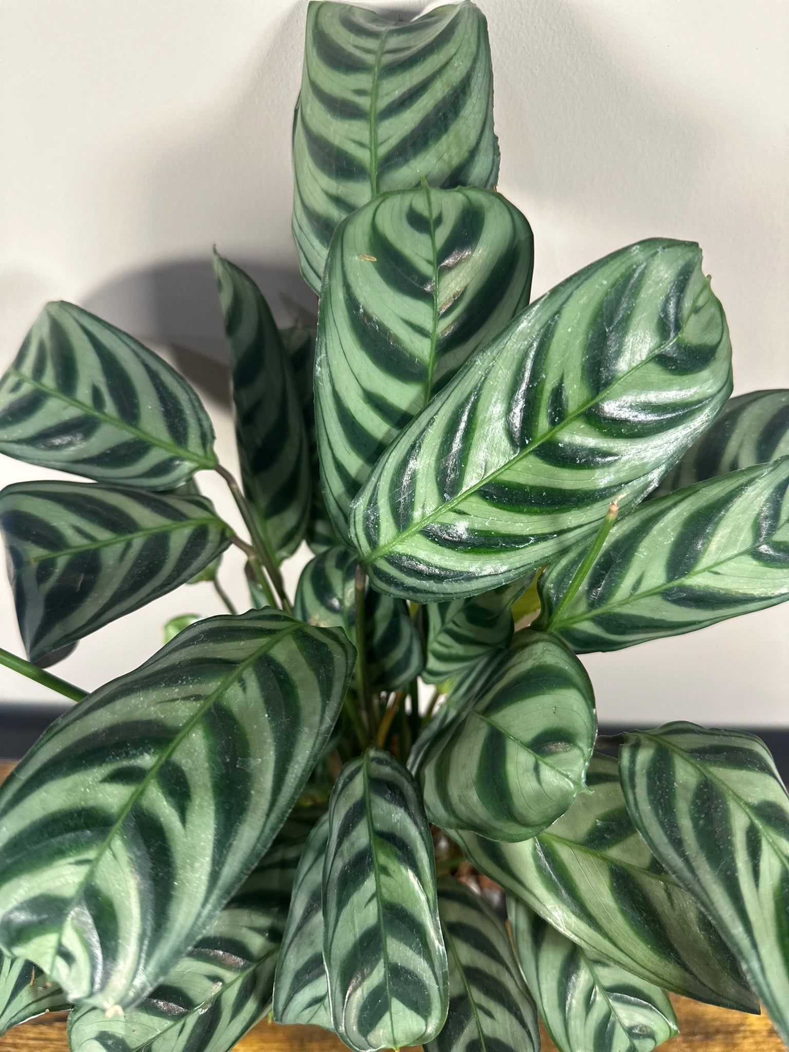 The Calathea Burle Marx, or Calathea Warscewiczii, flaunts stunning oblong leaves decorated with dark green and silver patterns. This pet-friendly plant loves cozy, humid spots—think kitchens or bathrooms—making it a charming and safe addition to your green family!