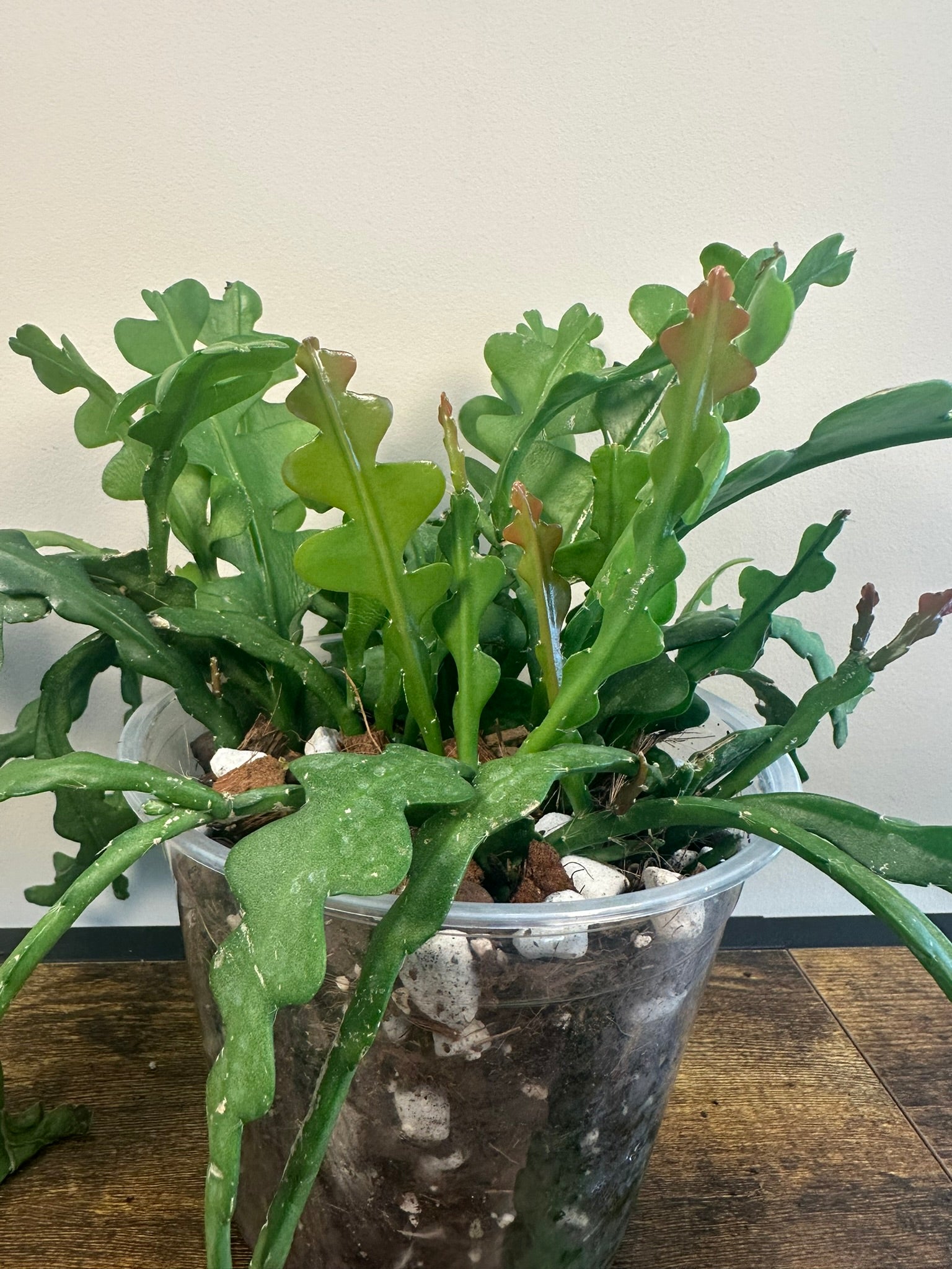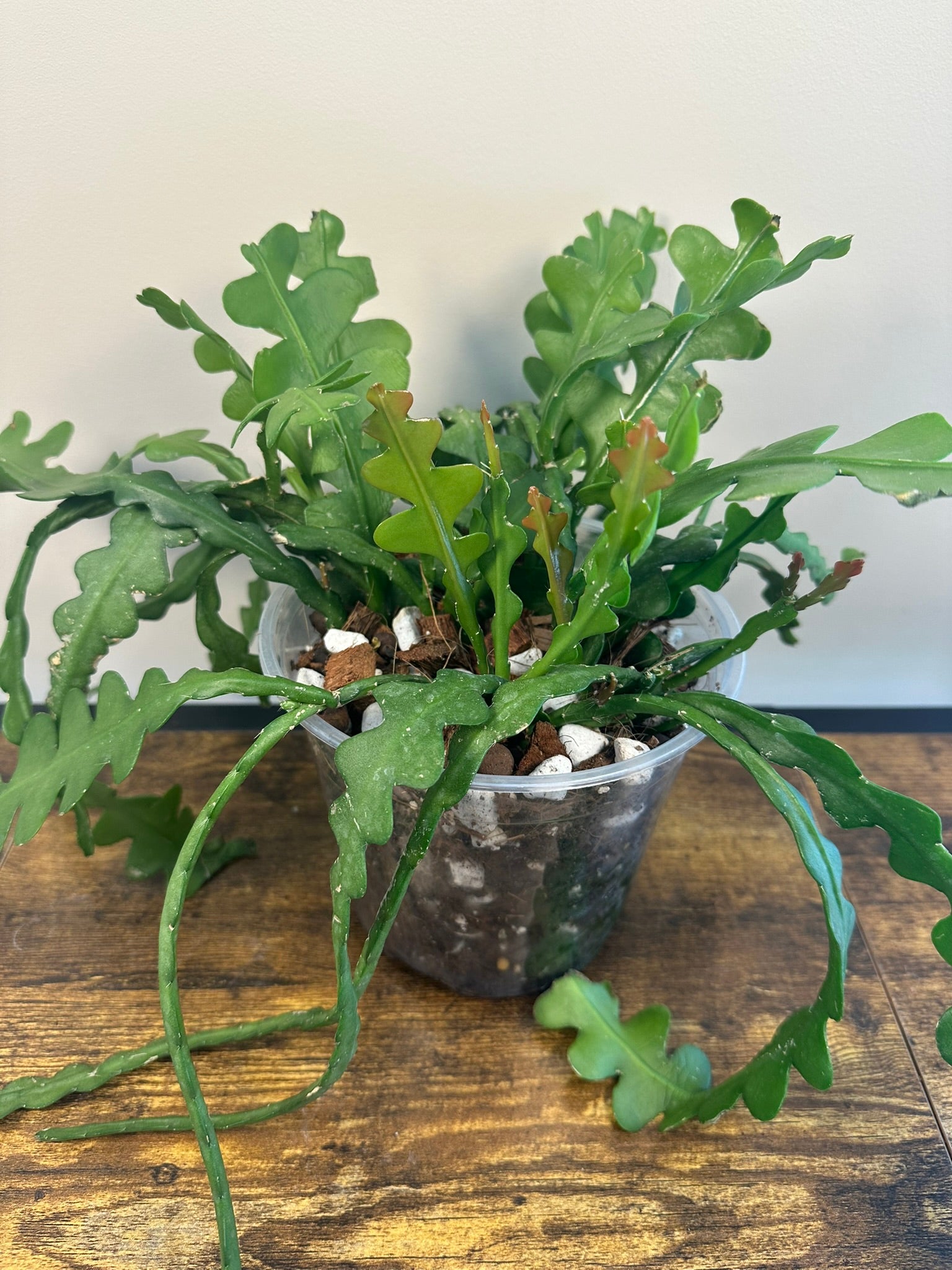 This unusual and quirky cactus, known as Fishbone Cactus or Ric Rac Cactus, is a stunner from Mexico with elongated, vine-like stems that resemble rib cages. This cactus blooms after 3 years and has fragrant, short-lived, white and cream flowers that open at night in the fall. Keep in mind to repot annually, as this fast-growing, large plant needs room to grow!
