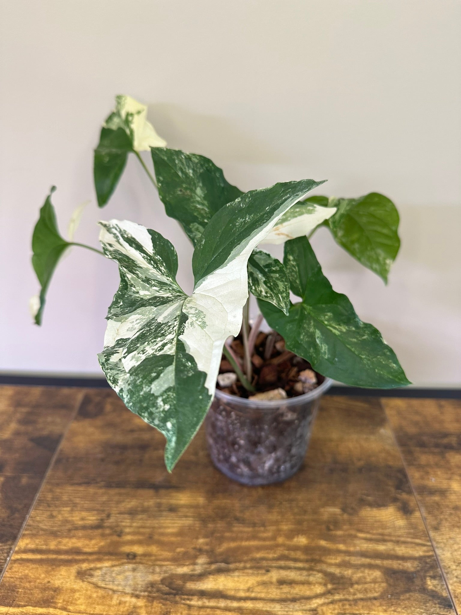The Syngonium Albo is a must-have for plant enthusiasts, celebrated for its breathtaking variegation. Its arrow-shaped leaves feature a stunning contrast of creamy white and vibrant green, creating a truly eye-catching display. Each leaf is a one-of-a-kind work of art, making this plant a centerpiece in any indoor garden.
