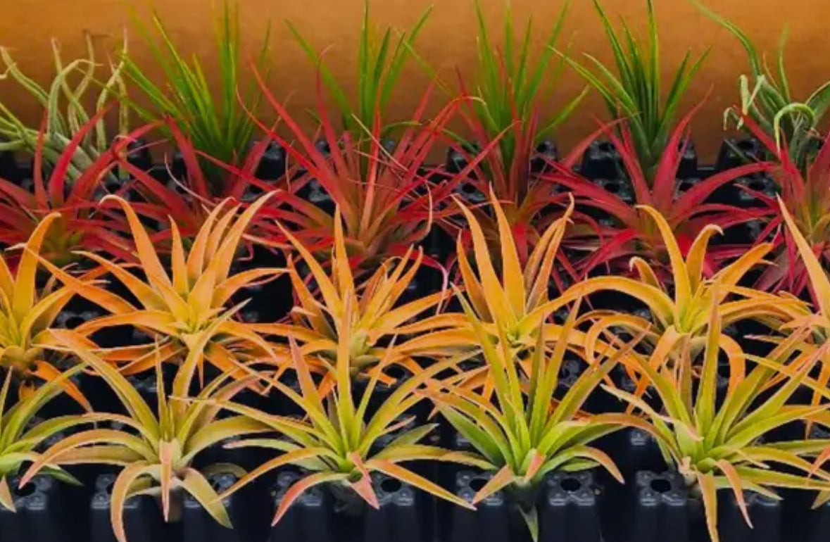 Air plants are a mess free and easy-care plant. They require bi weekly soaking in a bowl of purified water and occasional misting in between. Air plants will thrive in 4-6 hours of bright light per day.