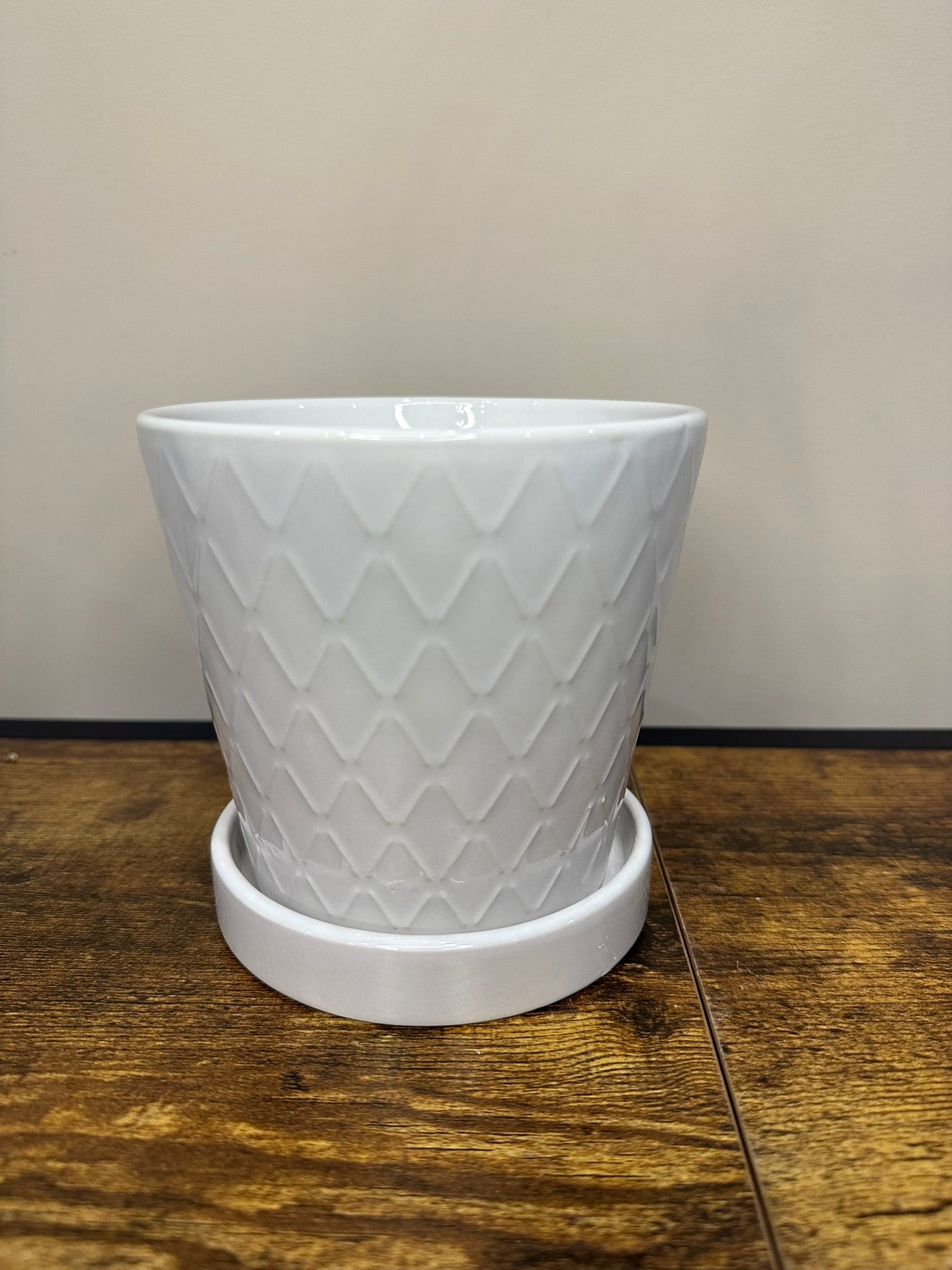 This classic and elegant white ceramic pot will make your favorite plant pop! Check out the different designs to find what works best in your space!